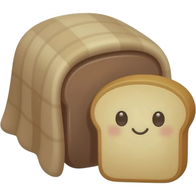Light brown blanket and bread plushie sick day with a girl with brown hair and pink pajama and hearts emoji