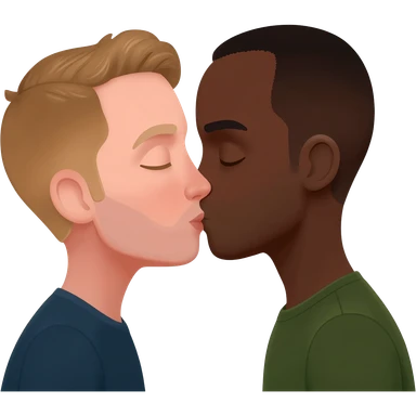 A white man kissing a black man emoji