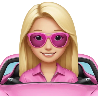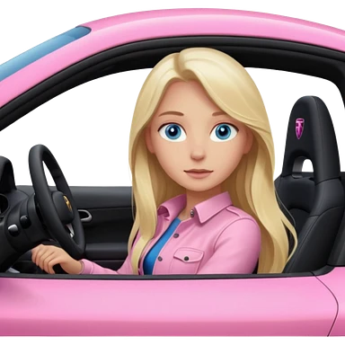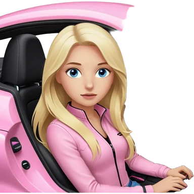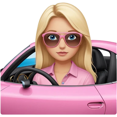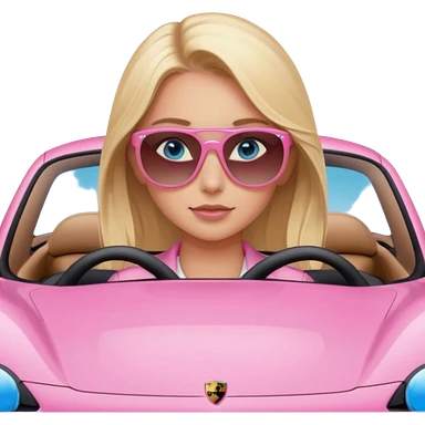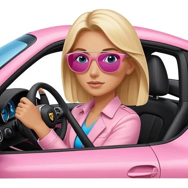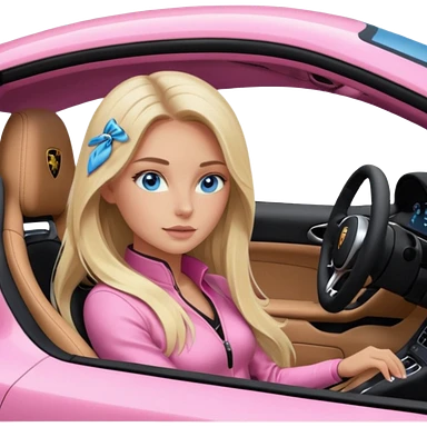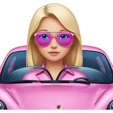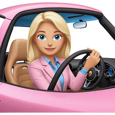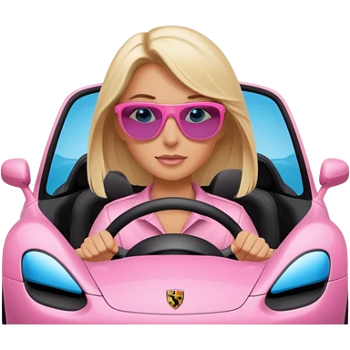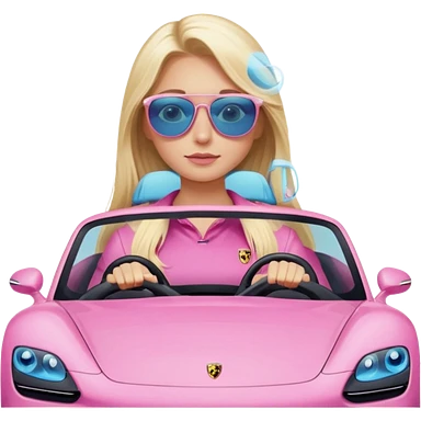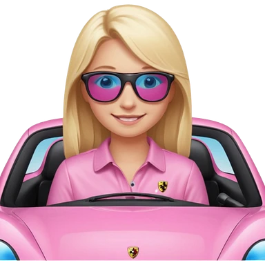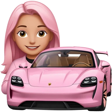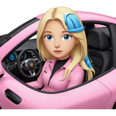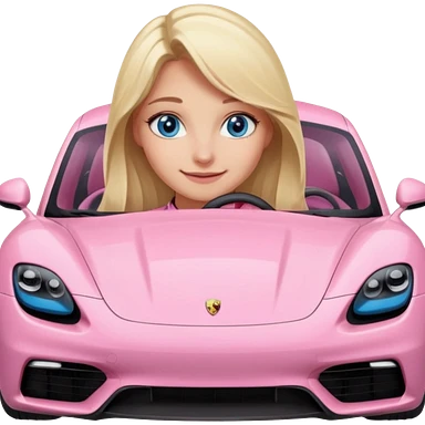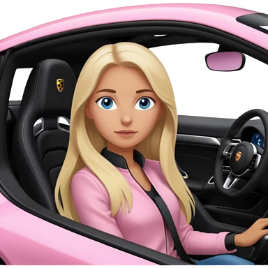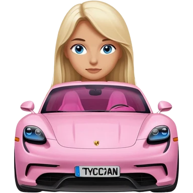 Pink porsche taycan with blonde with blue eyes driving it emoji