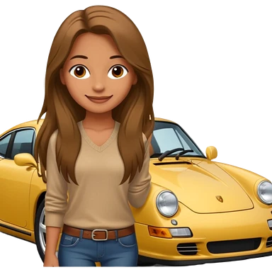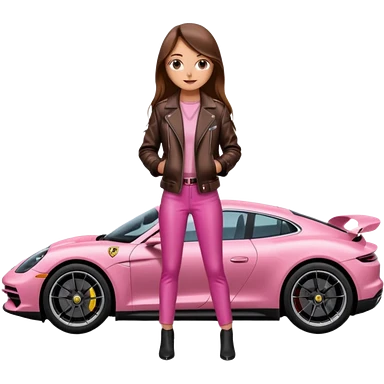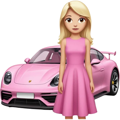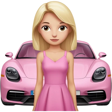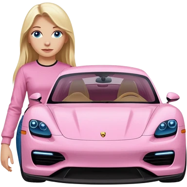 Blonde girl with blue eyes sitting infront of a pink porsche taycan emoji
