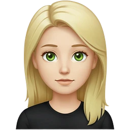 tech woman with long blonde hair, pale blue eyes. And black shirt. emoji
