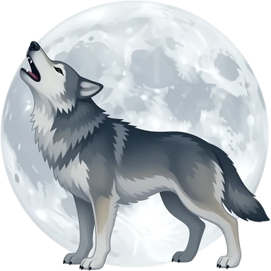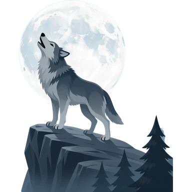 Dolunayda yüksek kayanın üstünde uluyan kurt emoji