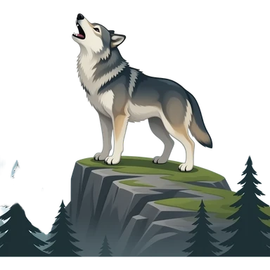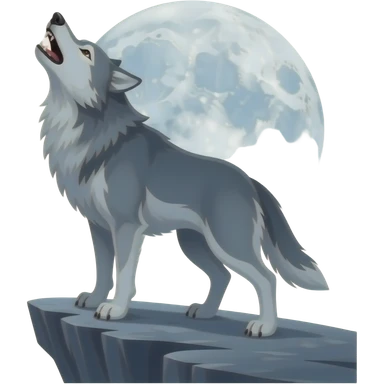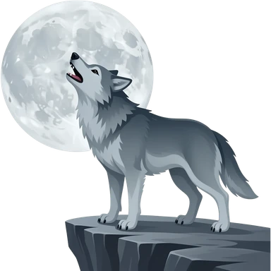 yüksek kayanın üstünde dolunaya karşı uluyan kurt emoji