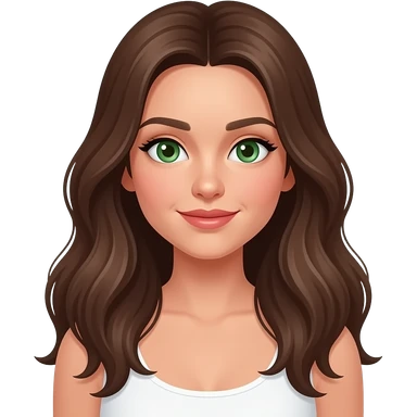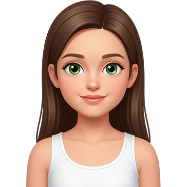 jeune fille au cheveux lisse long et brun et aux yeux vert avec un débardeur blanc emoji