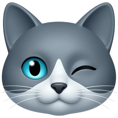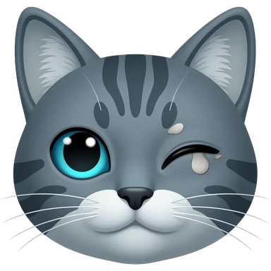 bluegrey cat head, cyan eyes, right eye blind emoji