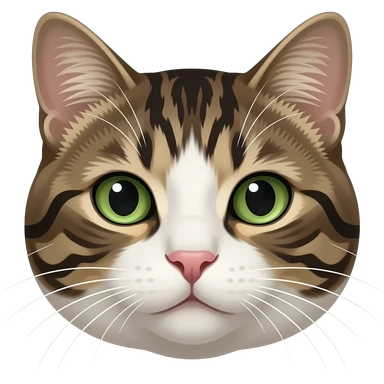 A male white cat head with darkbrown tabby spots and green eyes emoji