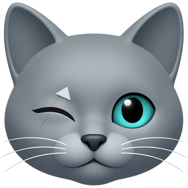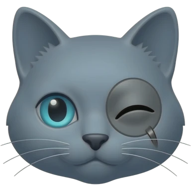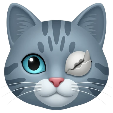 bluegrey cat head, cyan eyes, right eye blind with scar emoji