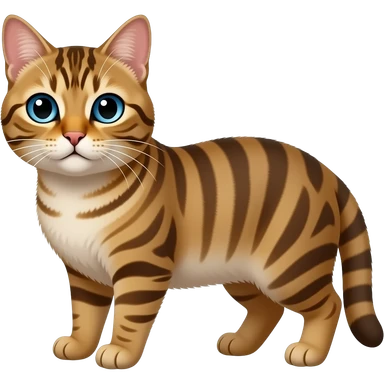 A brown tabby cat with lighter muzzle and blue eyes emoji