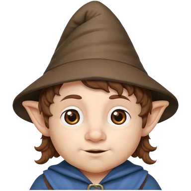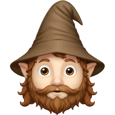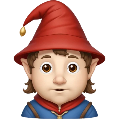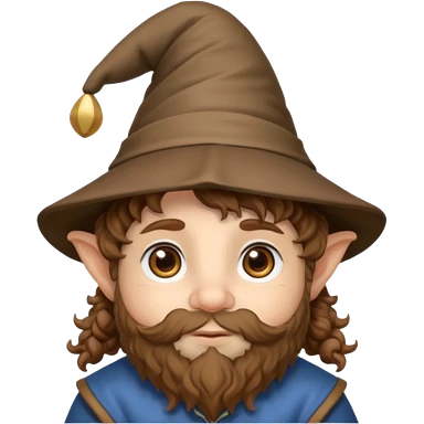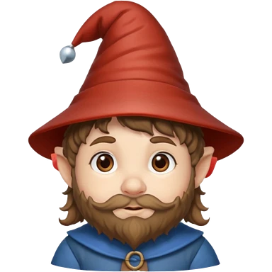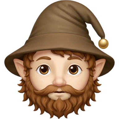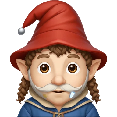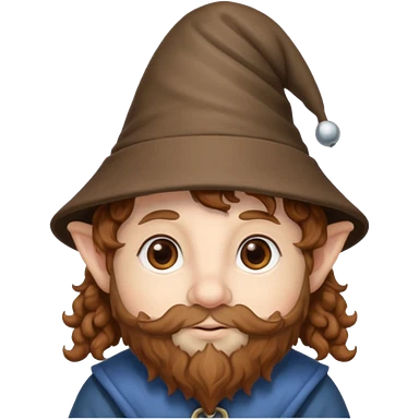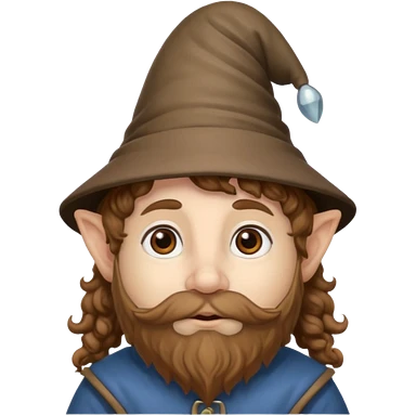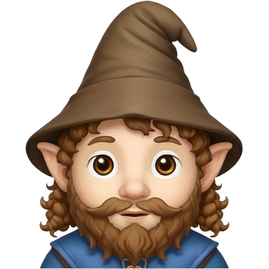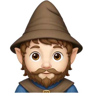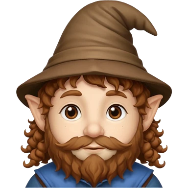 Gnomo con capelli ricci marroni, occhi marroni e cappello a punta emoji