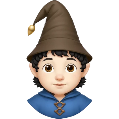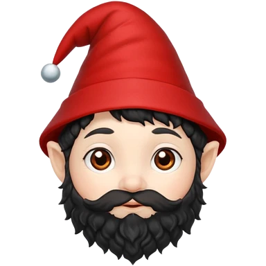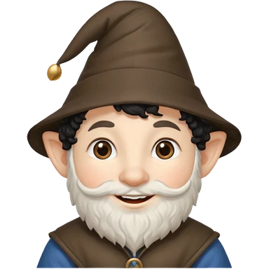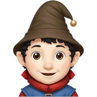 Gnomo con capelli ricci corti neri occhi marroni e cappello a punta emoji