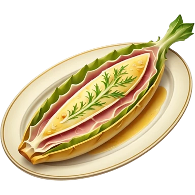 I want a chicory wrapped in ham, with a bechamel sauce over it emoji