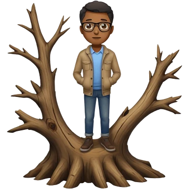 Une souche d'arbre mort avec un homme noir à lunette debout dessus emoji
