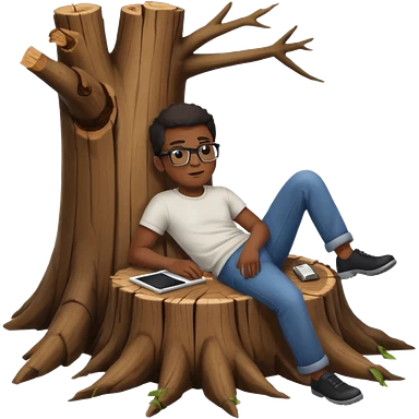 Une souche d'arbre mort avec un homme noir à lunette couché dessous emoji