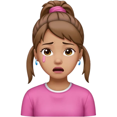 Amethy 14 2 crying (Light skin girl with brown ponytail wearing pink outfit being in tears) emoji