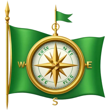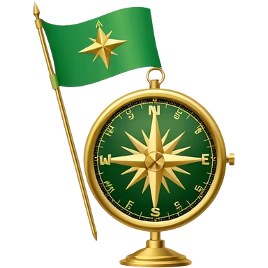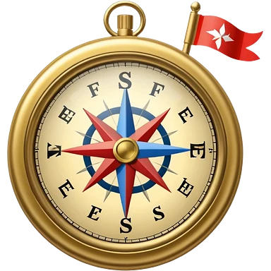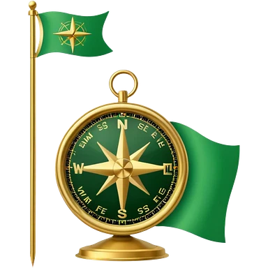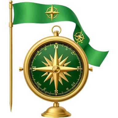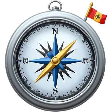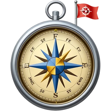 A minimal emoji of a compass pointing toward a planted flag. Flat design, confident colors, modern emoji style. Represents choosing direction and seeing it through to completion. Avoid corporate or motivational poster aesthetics. emoji