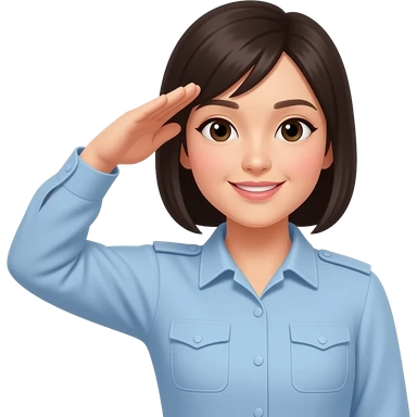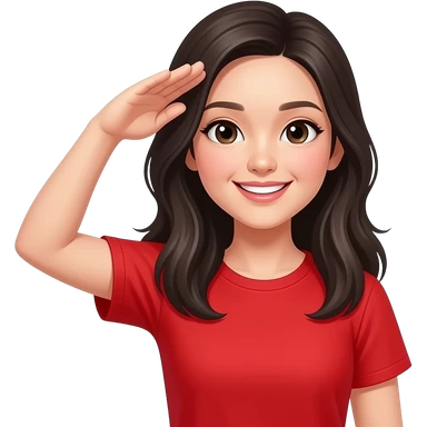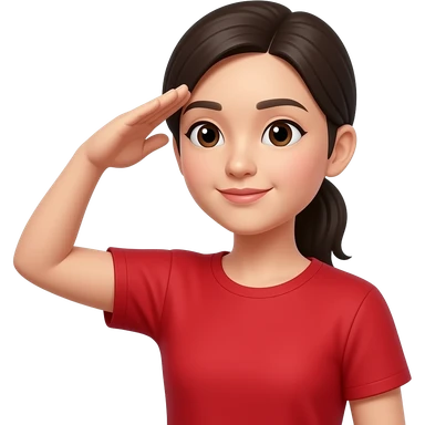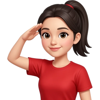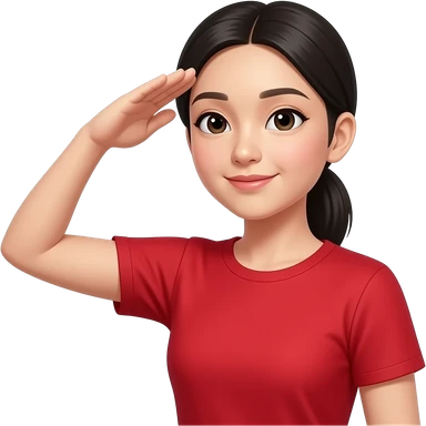 chinese woman saluting in red t shirt with low pony tail and side part emoji