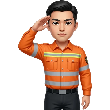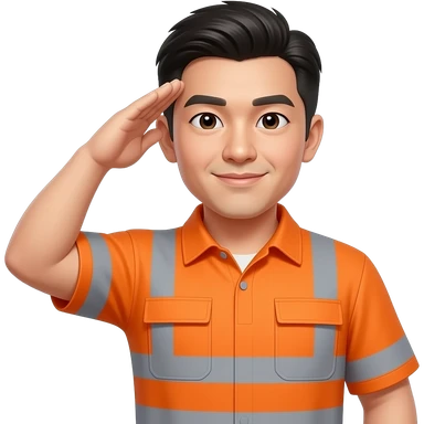 chinese man saluting in orange hi-vis collared shirt cropped to torso emoji