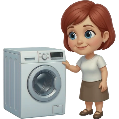 old lady.slim.small. has very close cropped red hair. in love with her new washing machine emoji