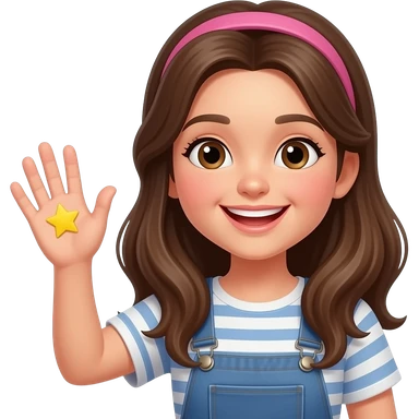 Девочка более счастливая махает рукой звезды emoji