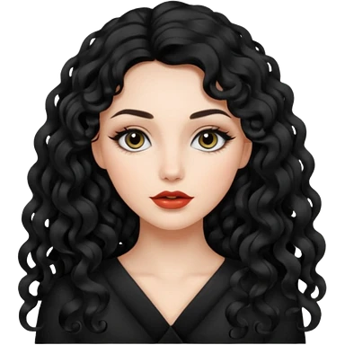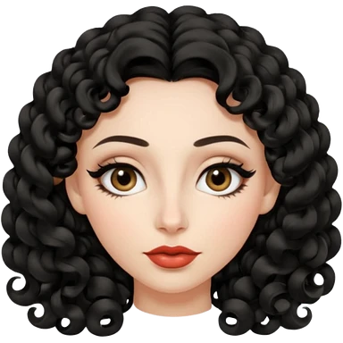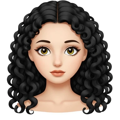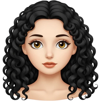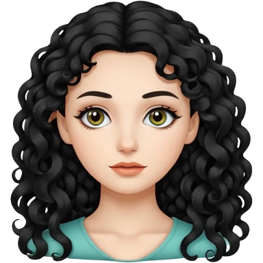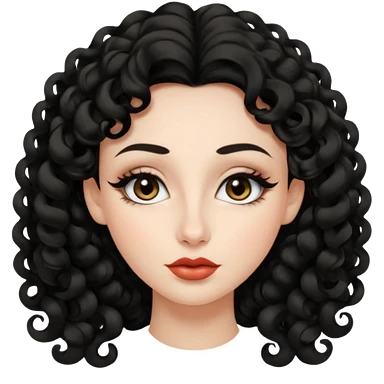 persona mujer con piel clara y rizos suaves color negro y largos y sin volumen y con delineador en los ojos y con los labios medianos, ojos almendrados y nariz respringada emoji