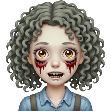 uma garota zumbi com o cabelo cacheado meio ondulado que usa aparelho emoji