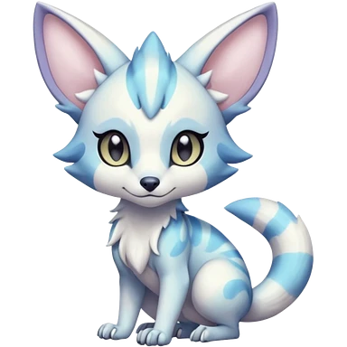 Irideacent pastel whitish pale bright cute adorable innocent precious Genet-Absol-Zeraora-Primagen-fusion-creature emoji
