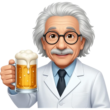 ейнштейн з пивом, в білому халаті, щасливий emoji