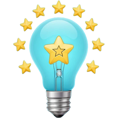 Light bulb icon with three small stars inside the bulb, flat emoji style, outline with blue and turquoise colors, white background emoji