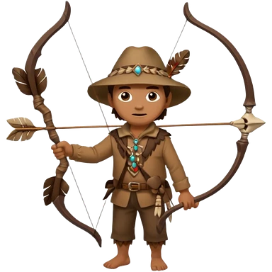 The classic hunter figure carrying a bow and arrow, dressed in brown with decorations made of feathers or bone teeth emoji