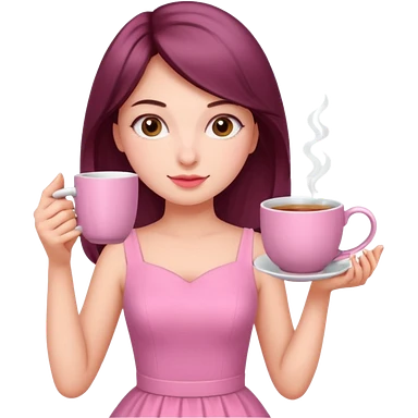 دختری با لباس صورتی و چایی بخوره با ماگ صورتی emoji
