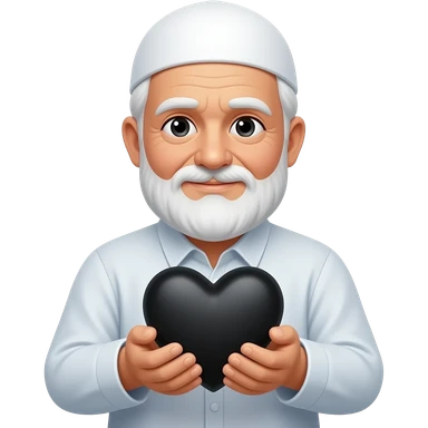 грустный пожилой мужчина мусульманин с черным сердем в руках emoji