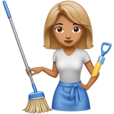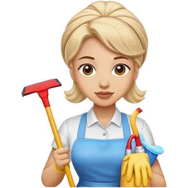 Девушка-мемоджи грустно и устало стоит с тряпкой и ведром, в старой домашней одежде, волосы в беспорядке, выражение лица несчастное и подавленное. Полное ощущение рутины и домашней уборки. Белый фон. emoji