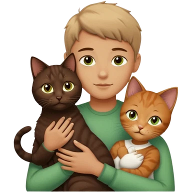 Crea un emoji donde salga un chico moreno con los ojos claros, una chica morena con los ojos marrones y un gato europeo comun de pelaje oscuro y ojos verde claro, quiero que se esten abrazando y el gato este en el medio de los dos emoji
