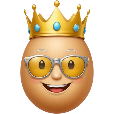 a funny, proud cartoon-style egg character wearing sunglasses and a small crown, solid orange background. emoji