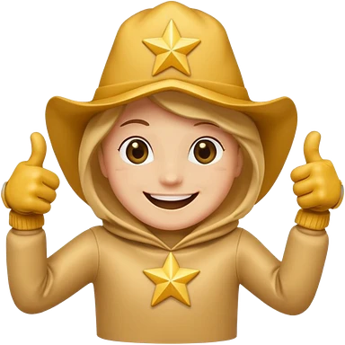 HD a smiling happy dancing star with both gloved hands doing thumbs up and blue background emoji