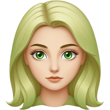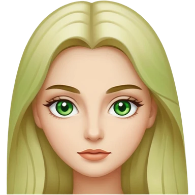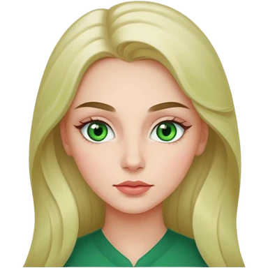 женщина с зелёными глазами, красивыми бровями, бежевыми волосами длинными, с асимметричным пробором emoji