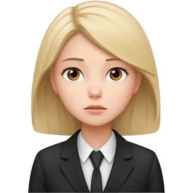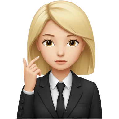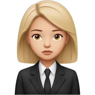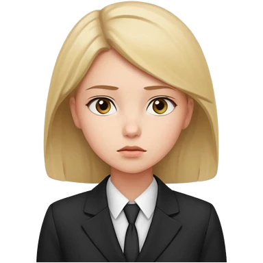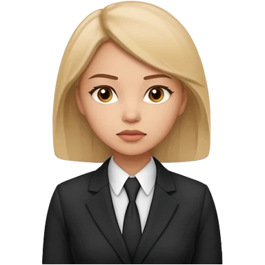 сделай молодую девушку в деловом костюме которая задумалась над чем-то emoji | AI Emoji Generator