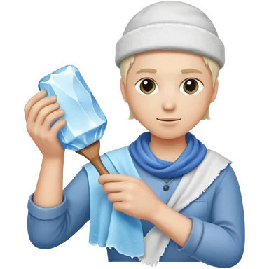 Sculptor polishing with cloth,Ice Sculptors. emoji