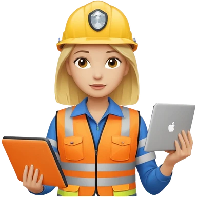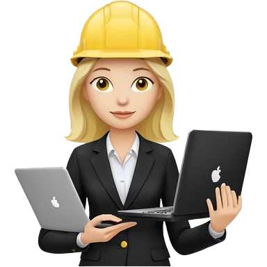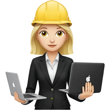сделай специалиста по охране труда, светловолосую девушку с ноутбуком в руках в желтой каске и черном брючном костюме без шильдиков на касках emoji