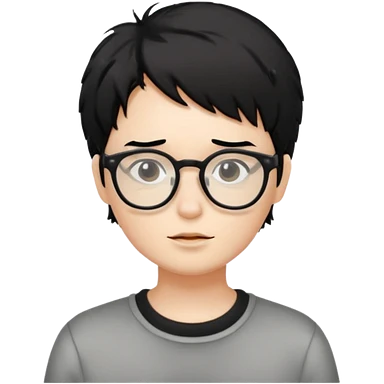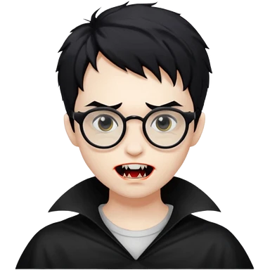 Cabelo bagunçado meio pequeno preto com cor de pele branco parecendo um vampiro e com oculos emoji