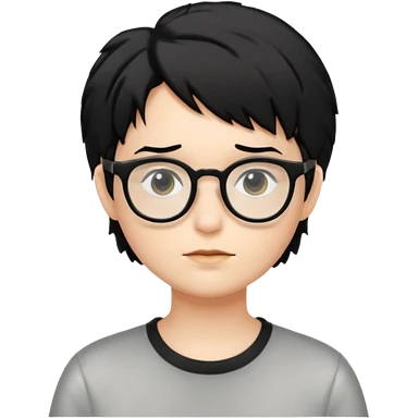 Cabelo bagunçado meio pequeno preto com cor de pele branca e com oculos emoji