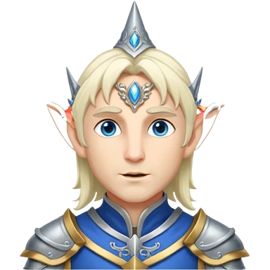 elf prince with pointy ears, white skin, silverblond shoulder-length hair, blue eyes, Chin beard, no crown or hat emoji