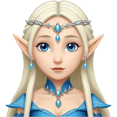 elf princess with pointy ears, white skin, silverblond hair with jewellery, blue eyes emoji