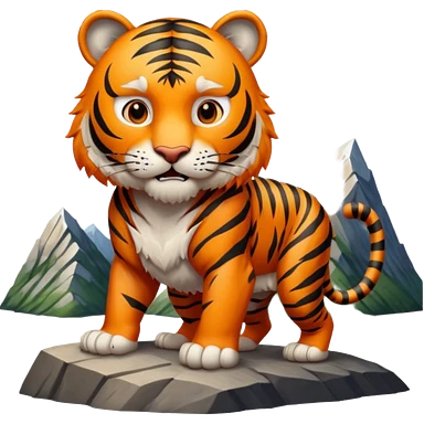 Tigre adulto feroz con la cara mas real no de caricatira en la cima montaña emoji