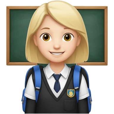 обличчя дівчинки - брюнетки з блакитними очима, школярки, задумливе emoji