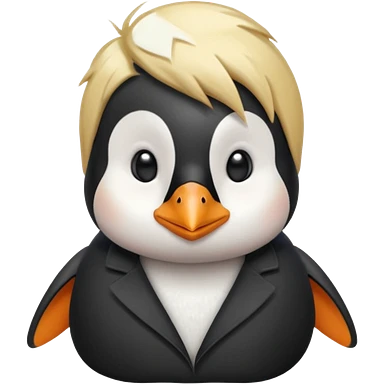 Pingüino con cabello rubio estilo cool con gafas de sol color rojo emoji