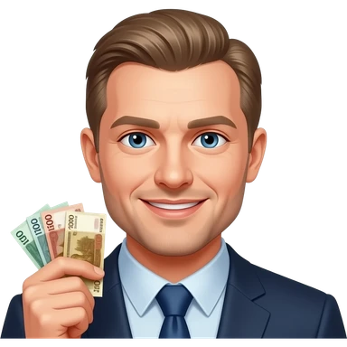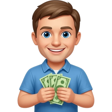 русский молодой парень с русскими деньгами крутой улыбвается emoji | AI Emoji Generator