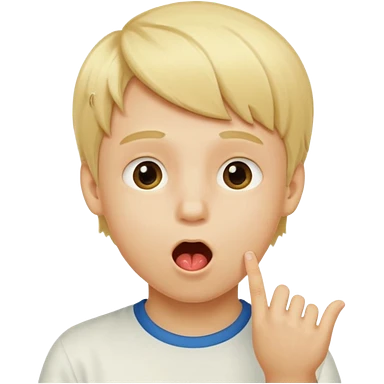 Un garçon blond qui ouvre la bouche laissant voir les numéros 6 7 emoji