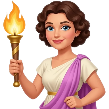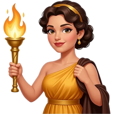 Columbia Pictures Torch Lady with dark brown curly low bun hair, amber peplos, one holding torch, one holding dark brown drape emoji