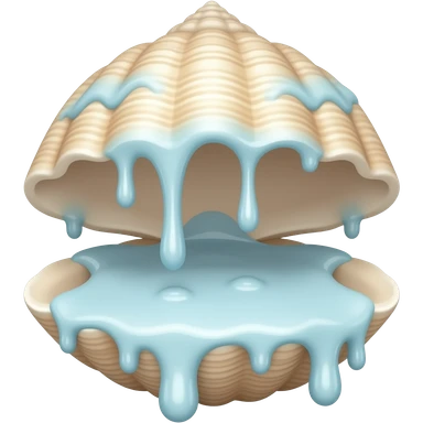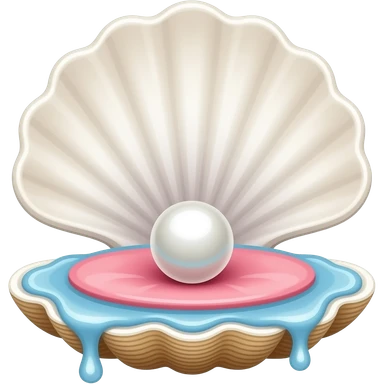 shell opening with strings of transparent goo, inside has pink meat and and a white pearl. emoji